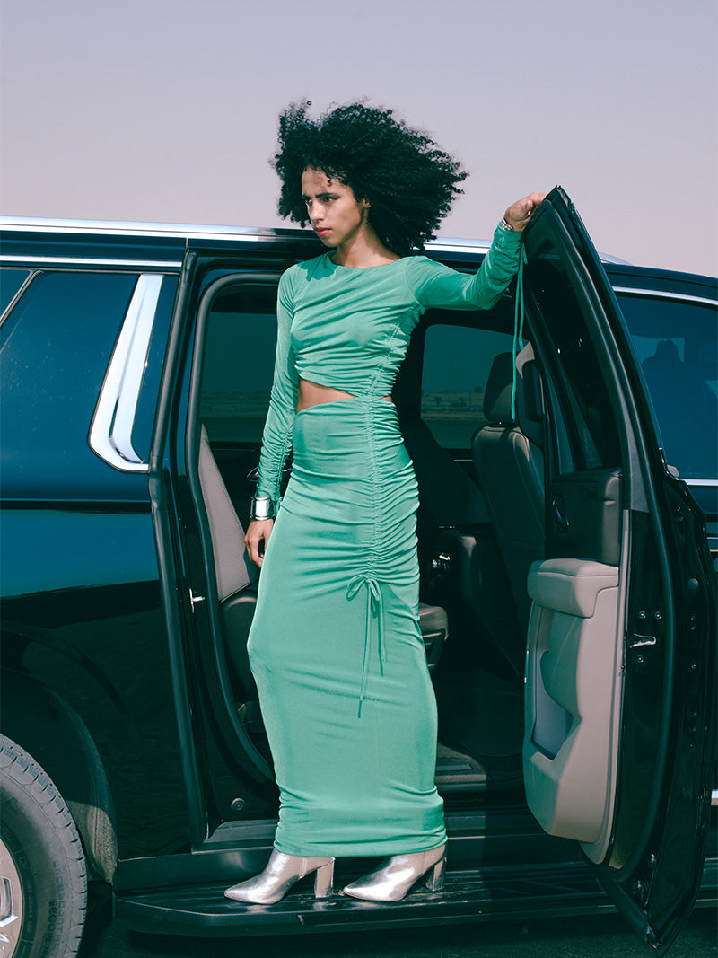 Magic is everywhere with the Celestial Whisper Dress. Honor the world with your ethereal presence. The mysterious shade of green and superior string along design will make you stand out. It is the finest decision for special events and daily use.