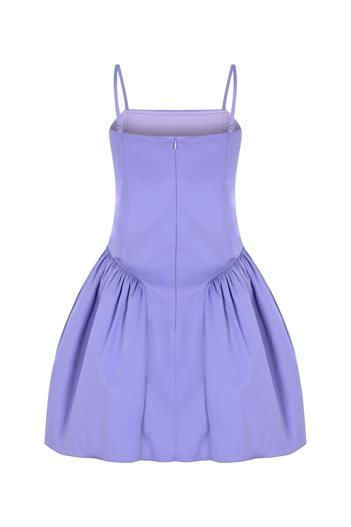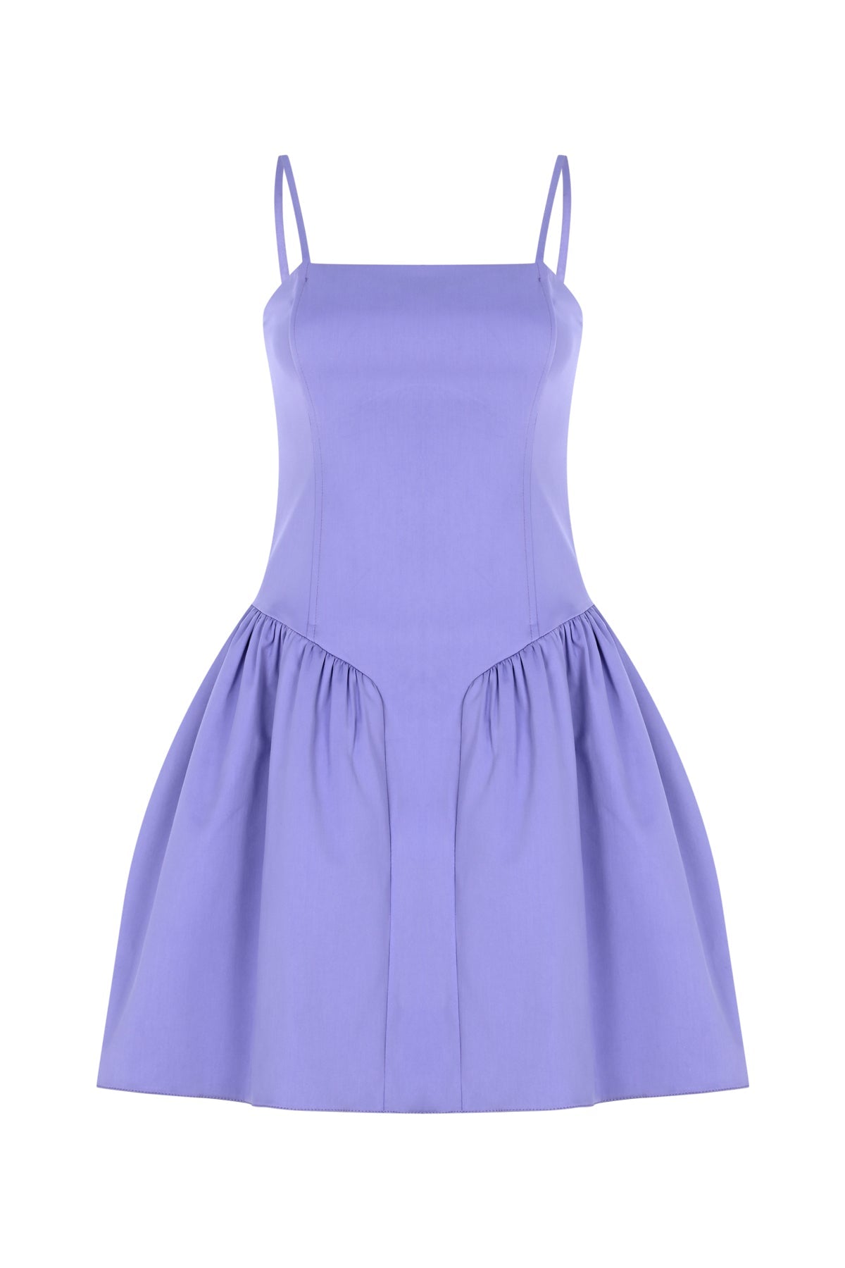 Purple halter dress, poplin. Lined skirt. Length: 85cm.