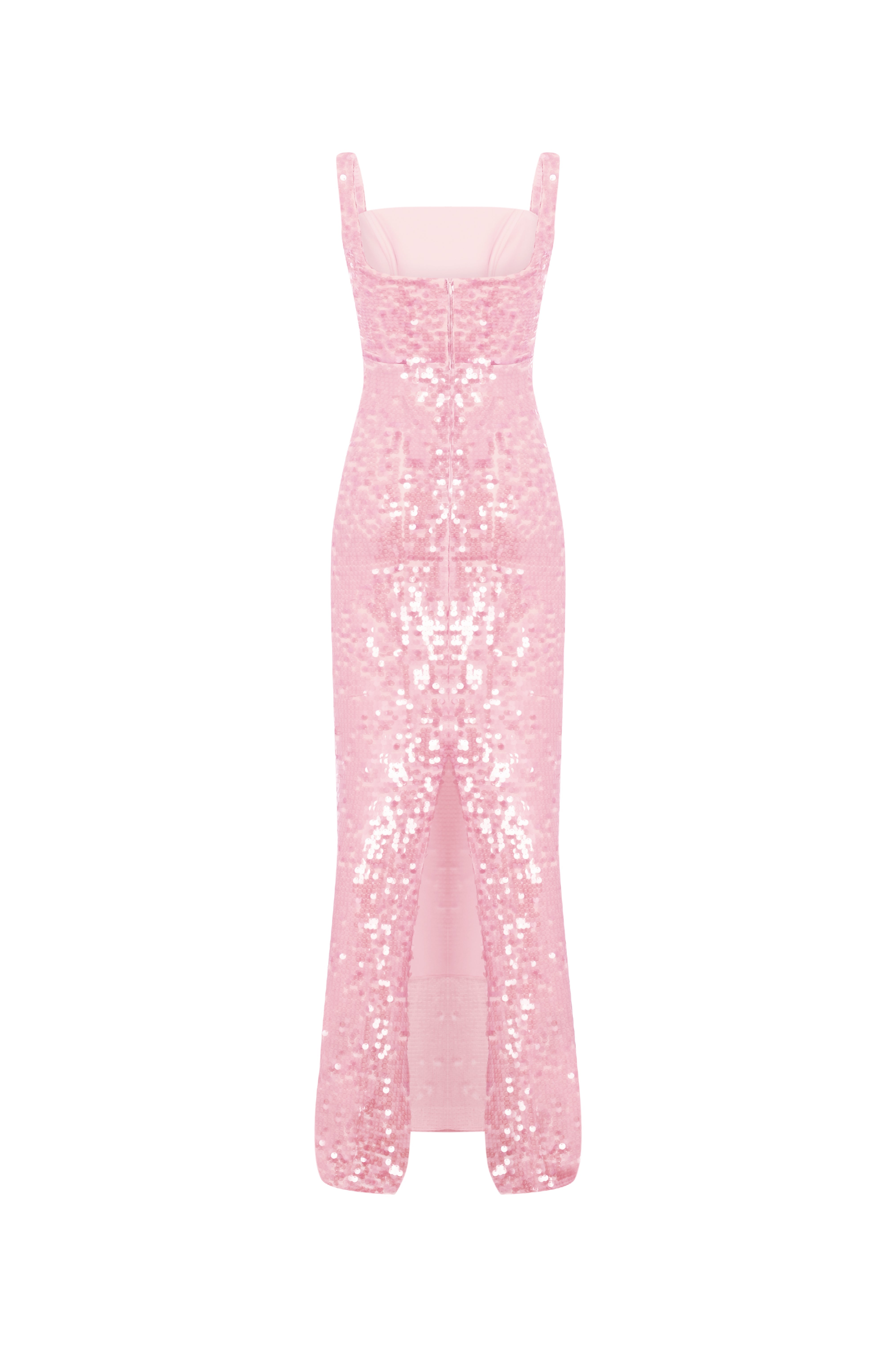There are many ways to make your night unforgettable: Maisie Dress is the brightest one. Its spaghetti strap form and back slit combine elegance with comfort, while the intricate sequin embellishments create a lasting impression.