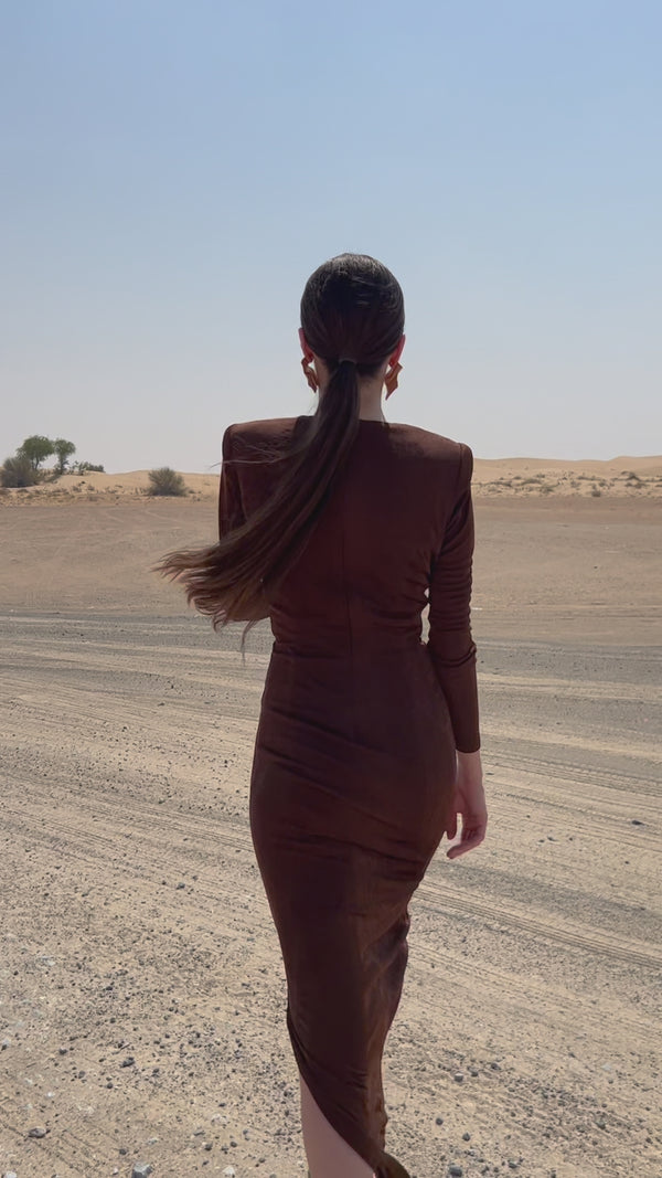 Add another rare piece to your wardrobe. Make every moment count. The Mocha Dress is characterized by its graceful design, tasteful details and smooth fabric. Fascinate crowds at every step with this dress. It will pass the vibe check at any special or daily event.