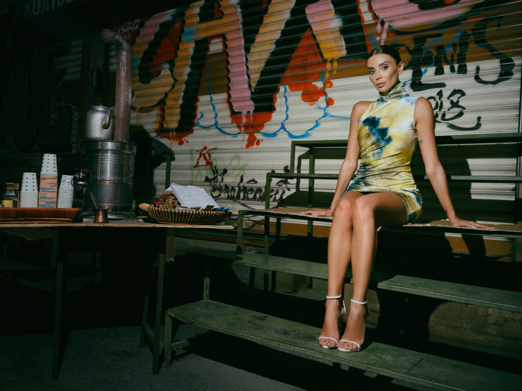 Elevate your style with this stunning tie-dye high neck dress, designed to turn heads and add an artistic flair to your wardrobe. The body-hugging silhouette enhances your natural shape, while the striking blend of colors – from vibrant blues to warm yellows – makes a powerful fashion statement. Perfect for a night out or a special occasion, this dress effortlessly combines comfort and contemporary style.