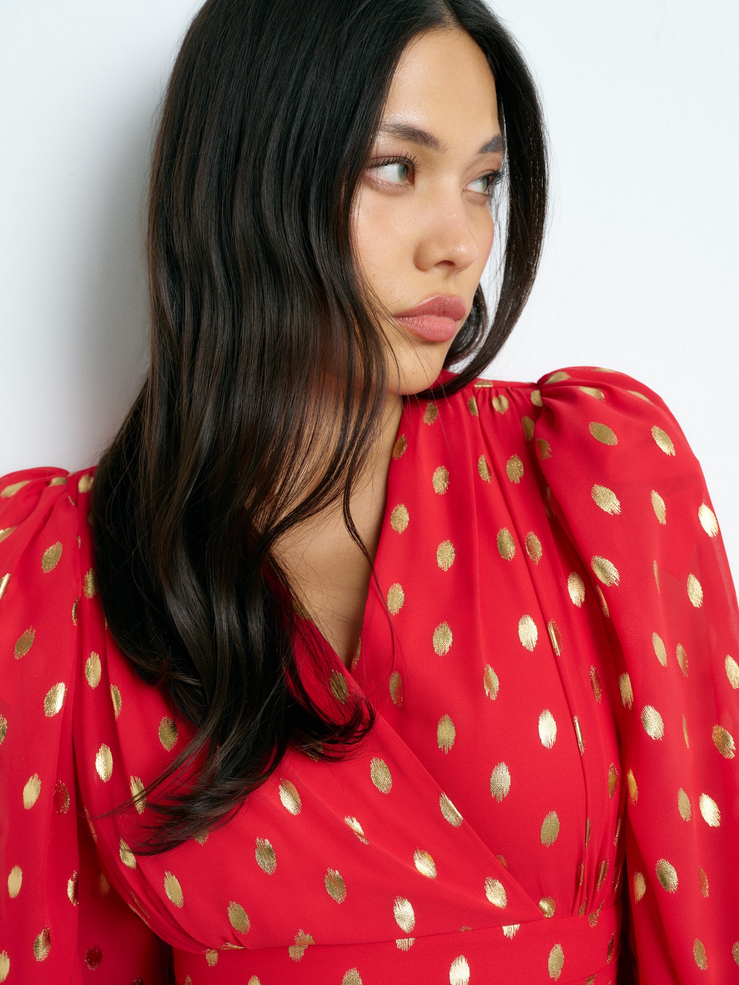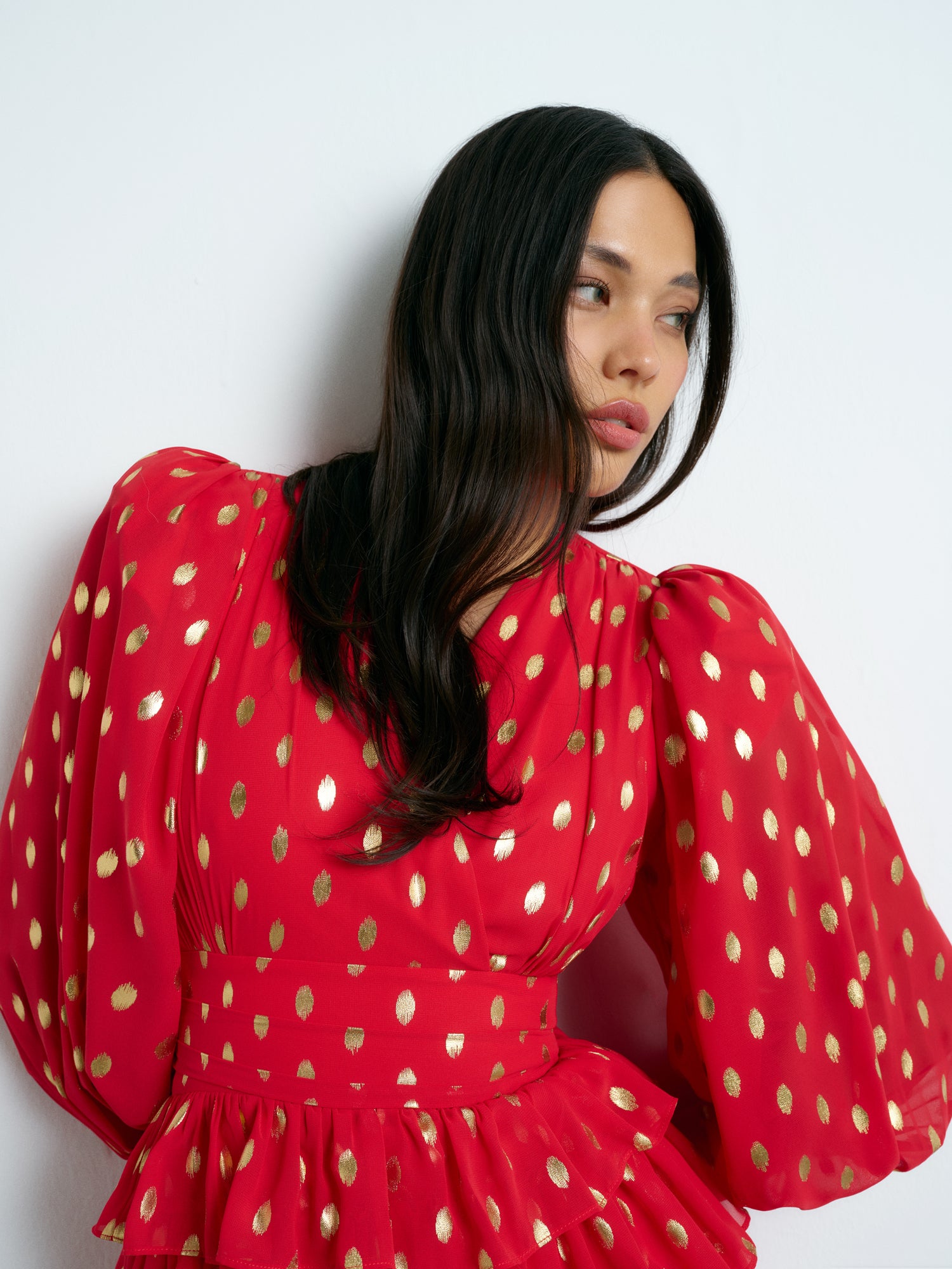 From the traditions of the Old World to today, dressing elegantly has always mattered. The Rubia Dress, adorned with eye-catching polka dots, channels the timeless allure of red.