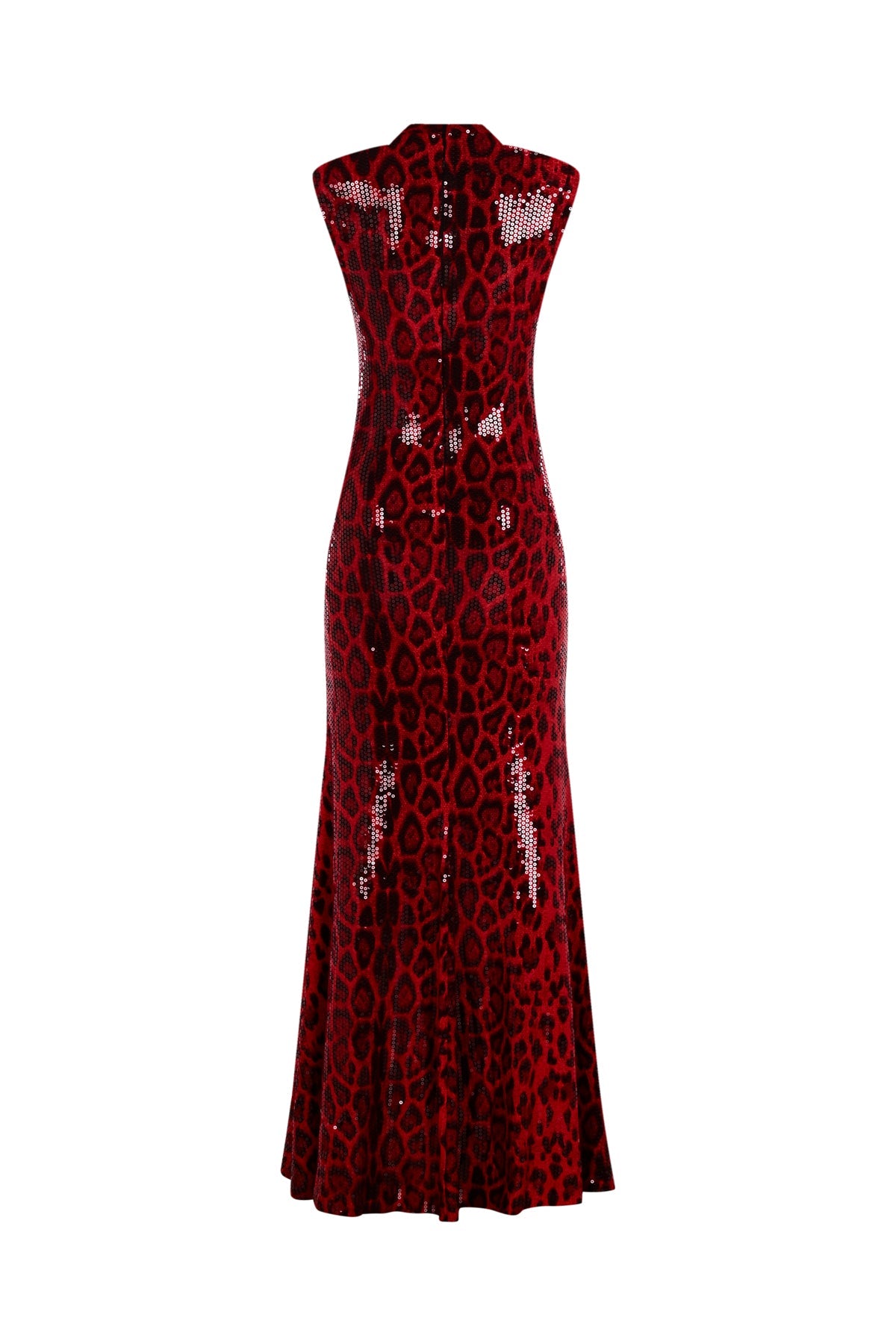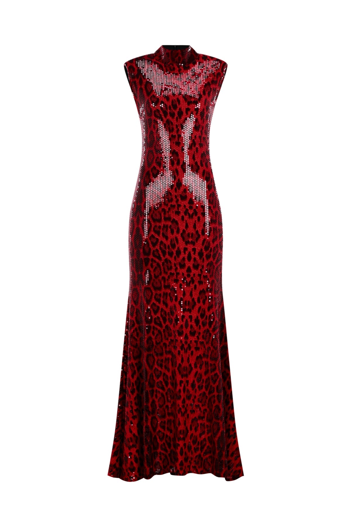 Turn heads and captivate the room in this striking red leopard print dress. Its daring design and shimmering accents make it the ultimate statement piece for those who love to stand out.