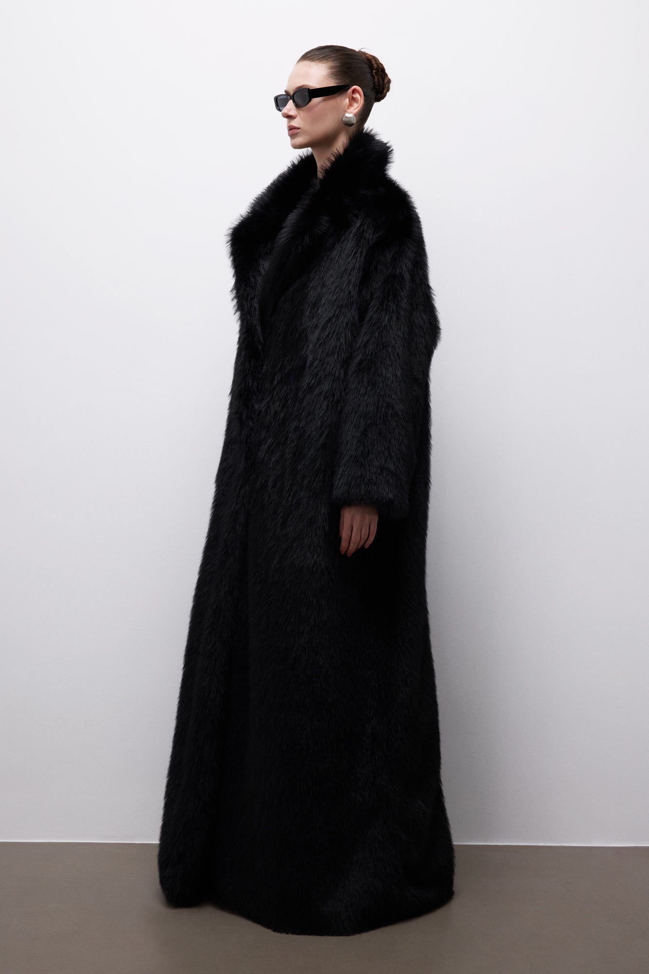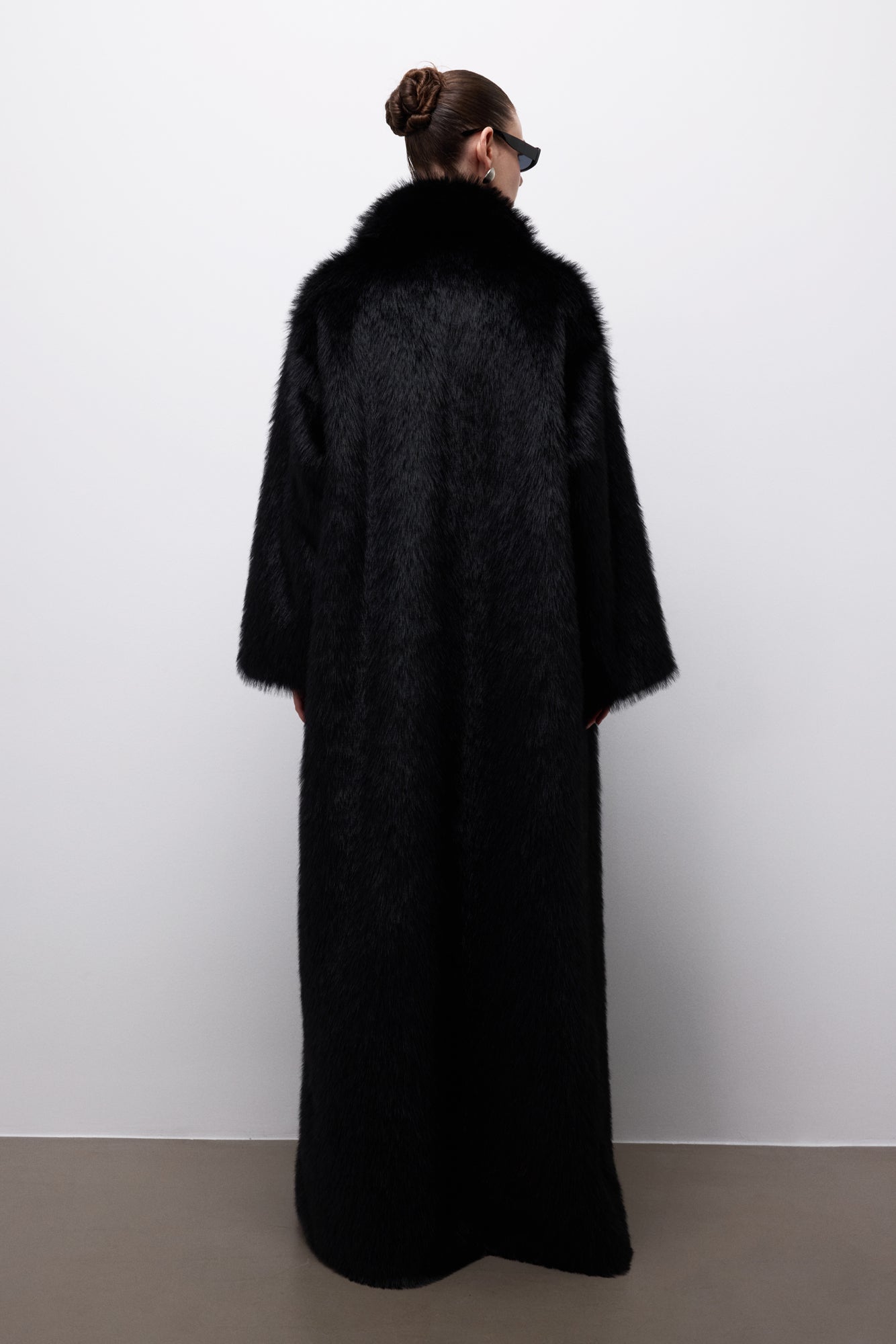 This long fur coat, where elegance is transformed into absolute power, represents a refined vision of luxury. Its fluid silhouette, voluminous collar, and balanced form create an impactful presence without excess. Quiet, timeless, and impeccable… Designed for those who know that true luxury is found in subtlety.